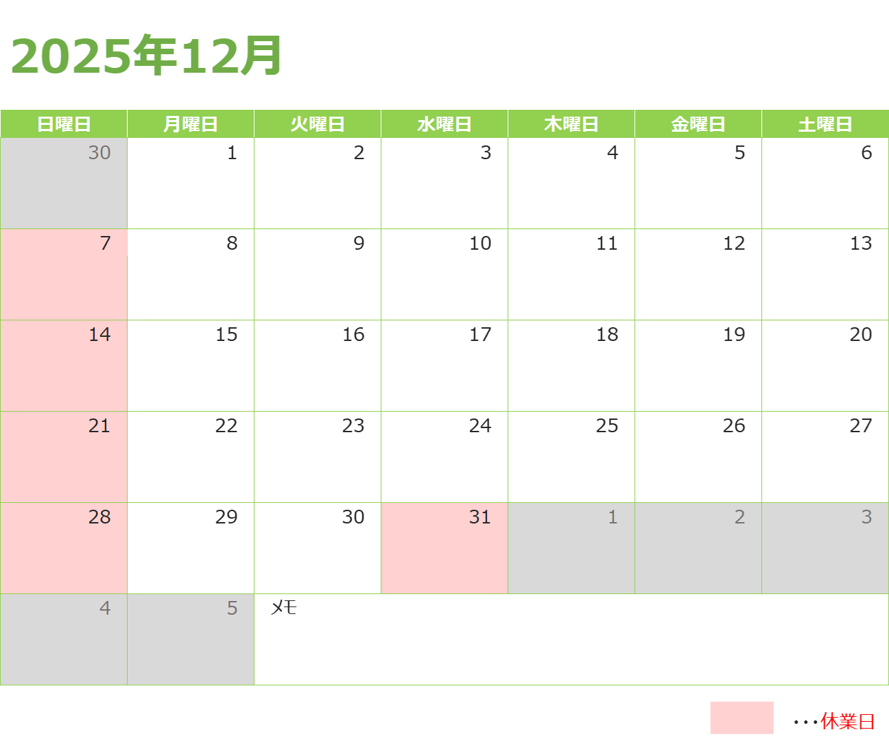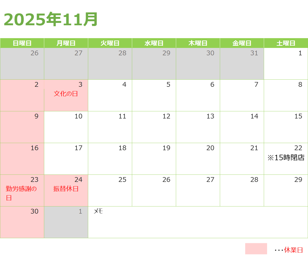 日 ・ 祝 休業